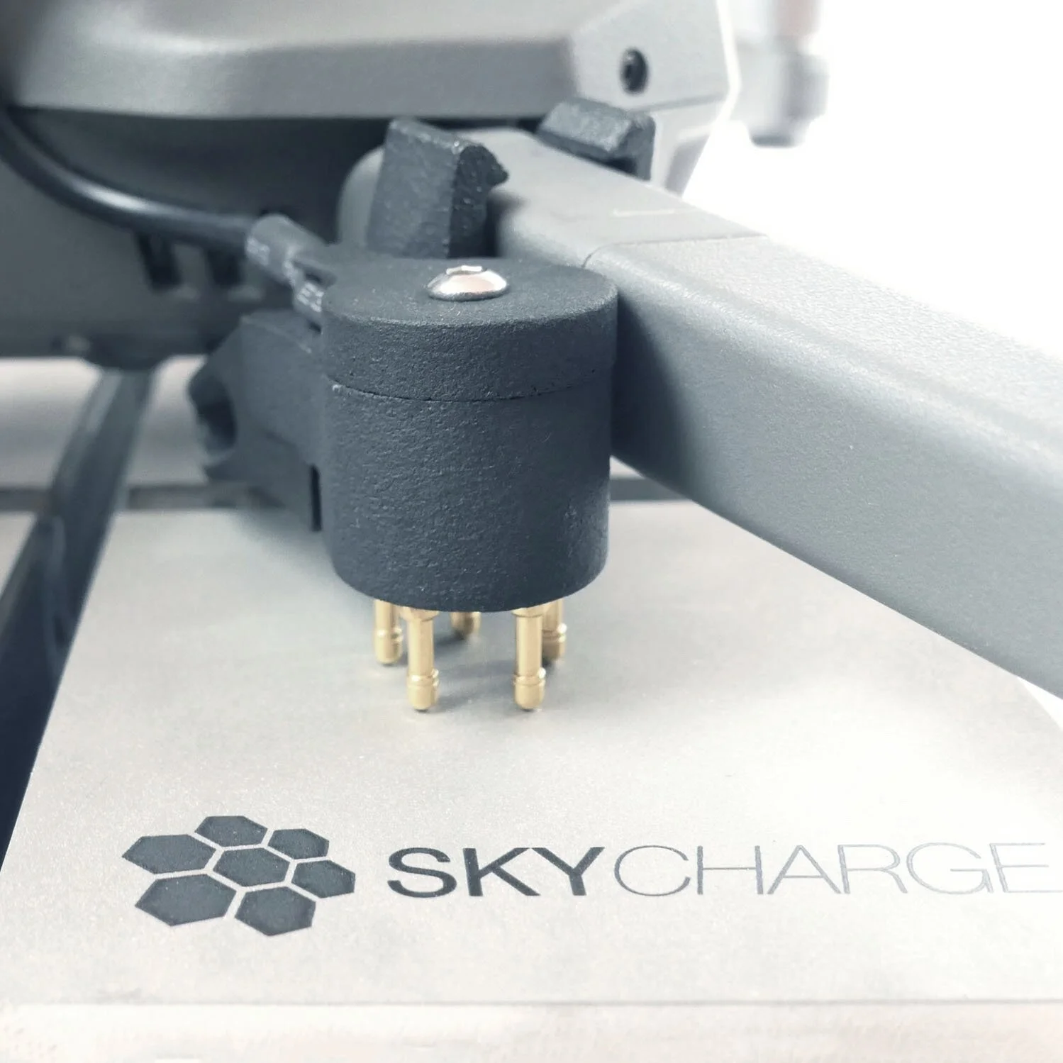 Skycharge develops an automatic and highly programmable contact charging system for commercial drones (UAVs).